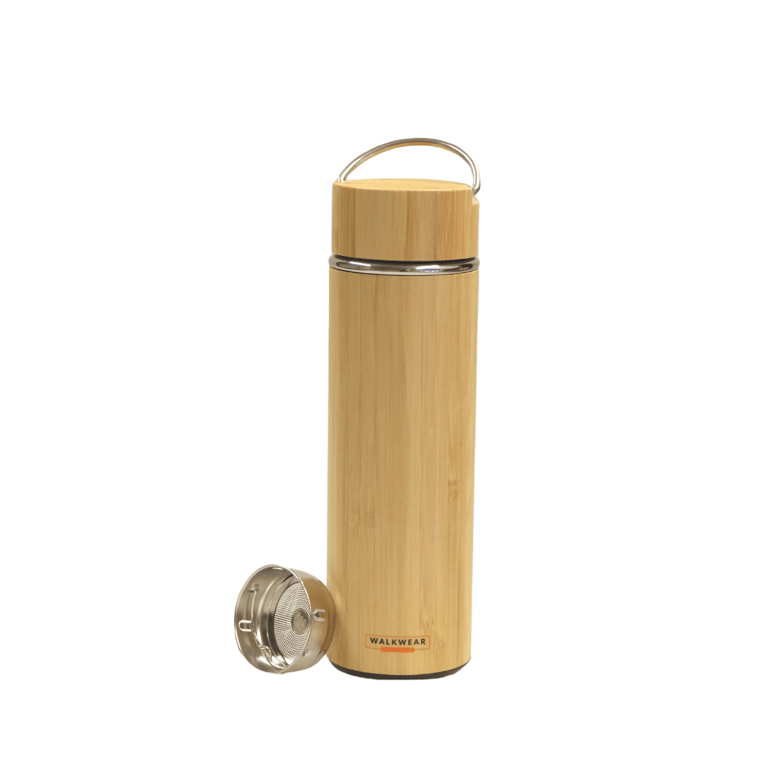 - Material: Doppelwandige Isolierflasche aus Edelstahl mit Bambus-Finish